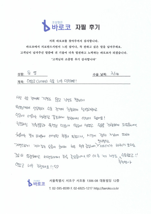 [연입주사 자필후기] 연입코(비개방) 수술 너무 만족해요!