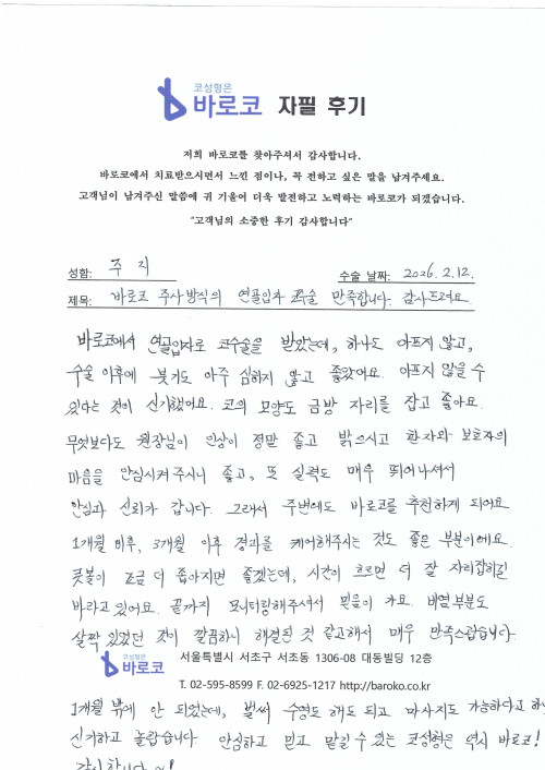 바로코 주사방식의 연골입자 코수술 만족합니다. 감사드려요