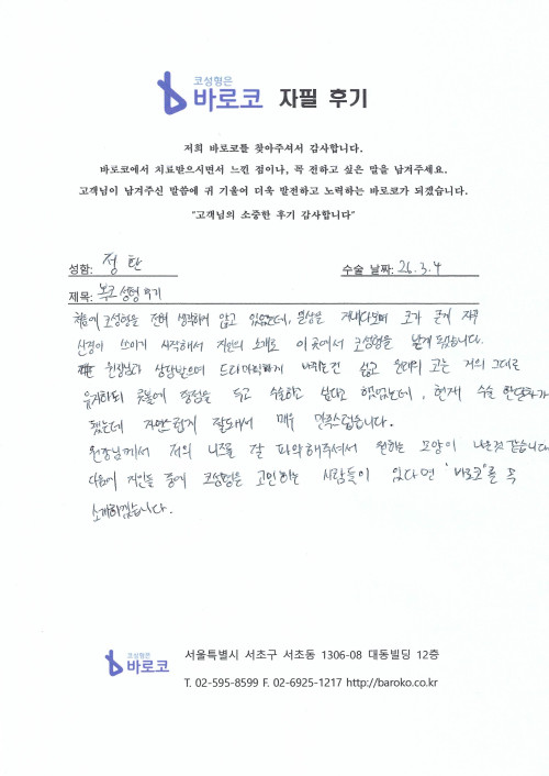 지인의 소개로 이곳에서 코성형을 받게 되었습니다.