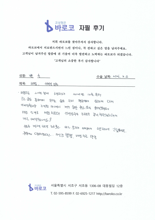 주위에서 이뻐졌다고 자신감 뿜뿜 비염 치료 만족