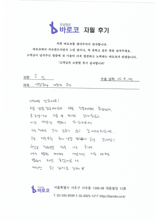 코 모양이나 수술 후 케아도 맘에 들었고