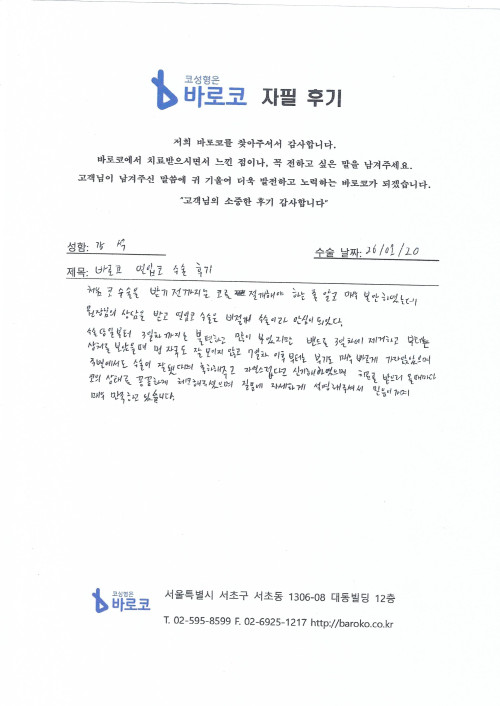[연입주사 자필후기] 바로코 연입코 수술 후기