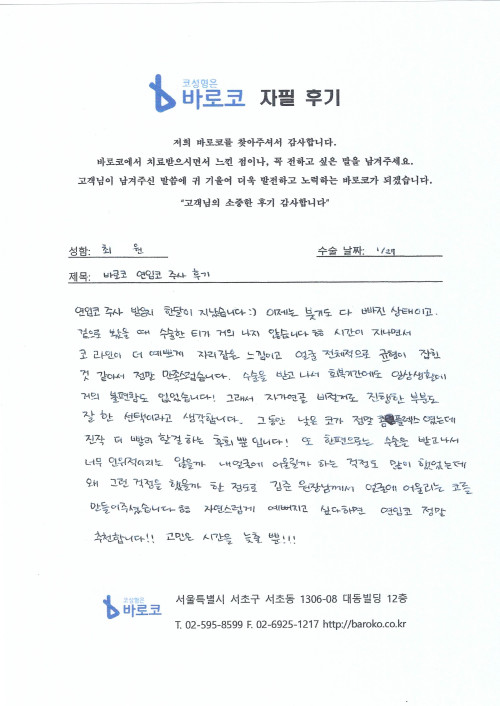 [연입주사 자필후기] 바로코 연입코 주사 후기
