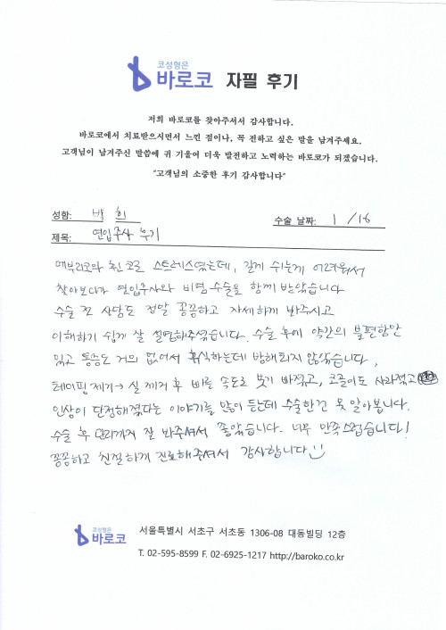 수술 후 관리까지 잘 봐주셔서 좋았습니다.