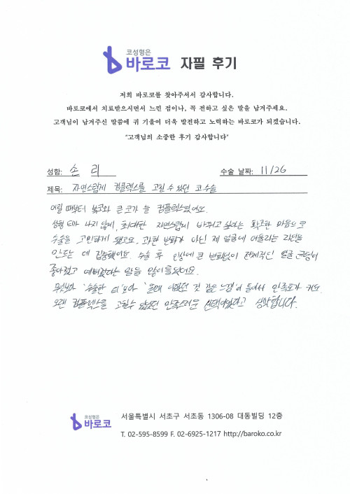 [연입주사 자필후기] 자연스럽게 컴플렉스를 고칠 수 있던 코수술