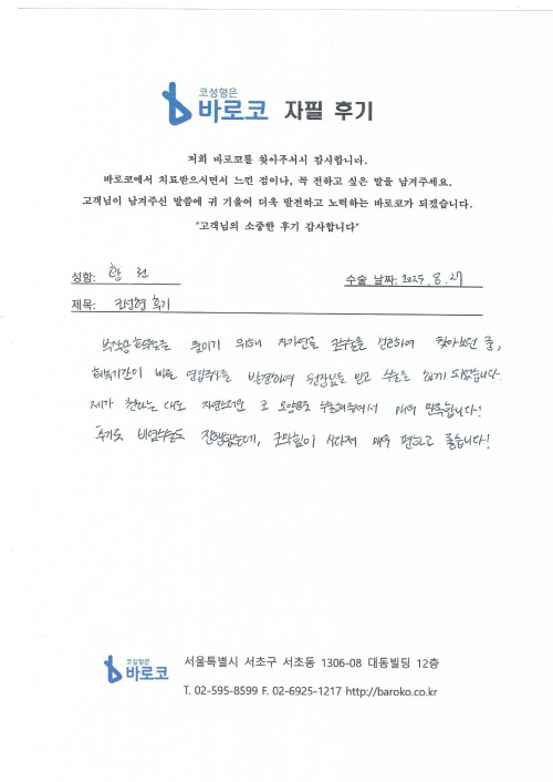 수술해 주셔서 매우 만족합니다!