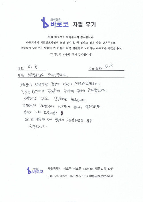[연입주사 자필후기] 친절한 진료 감사드립니다.
