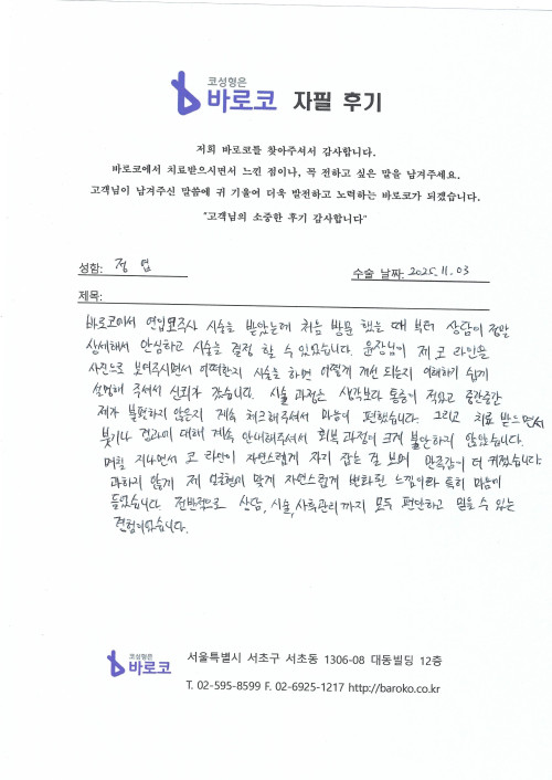 계속 안내해 주셔서 회복 과정이 크게 불안하지 않았습니다.