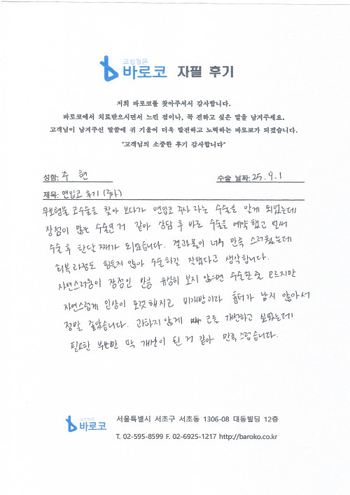 장점이 많은 수술인 것 같아 상담 후 바로 수술 예약 했고