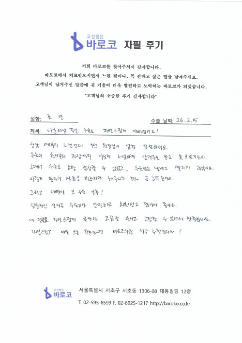 [연입주사 자필후기] 다운타임 적은 수술로 자연스럽게 이뻐졌어요!